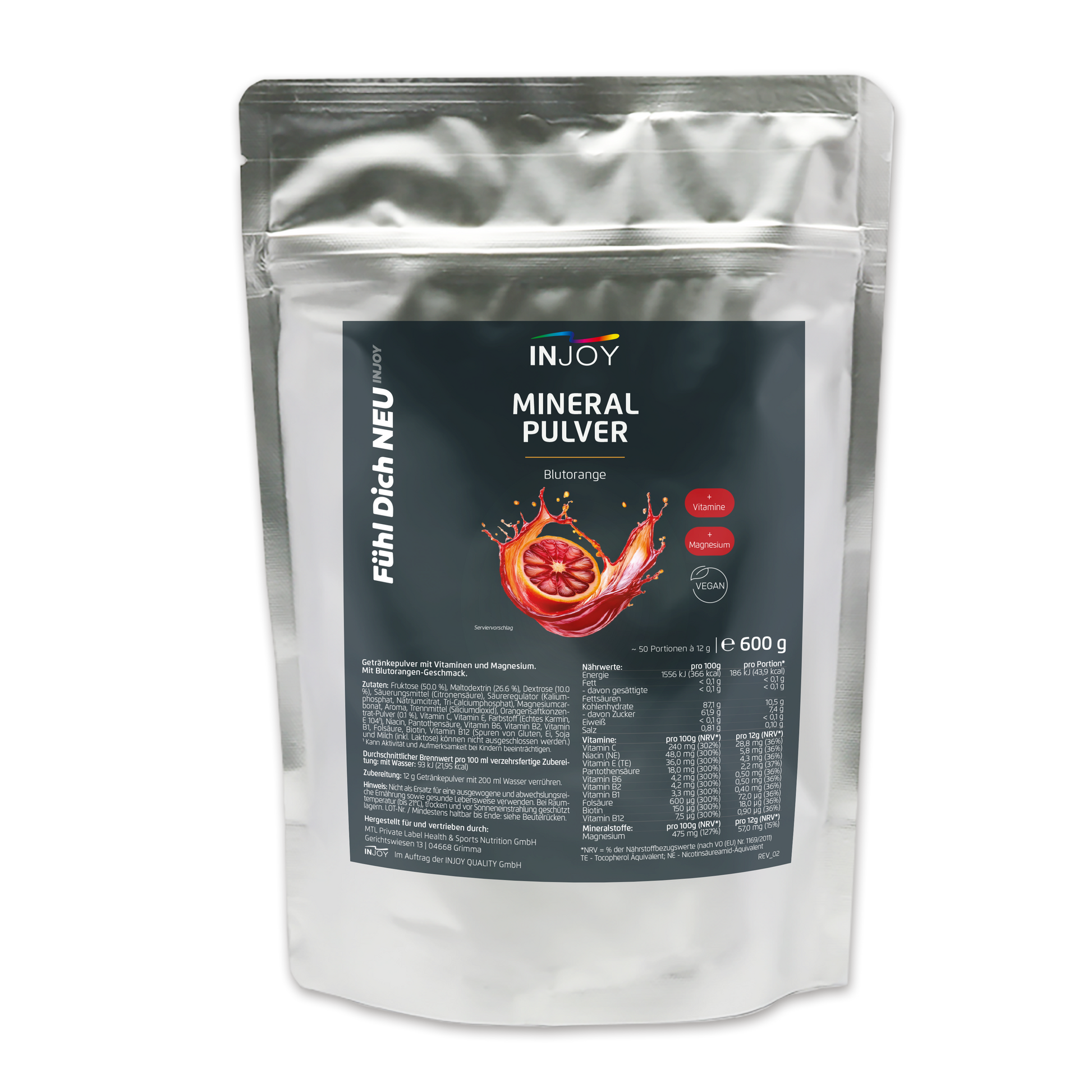Verkehrsbezeichnung: Getränkepulver mit Vitaminen und Magnesium zur Herstellung eines Kaltgetränks.